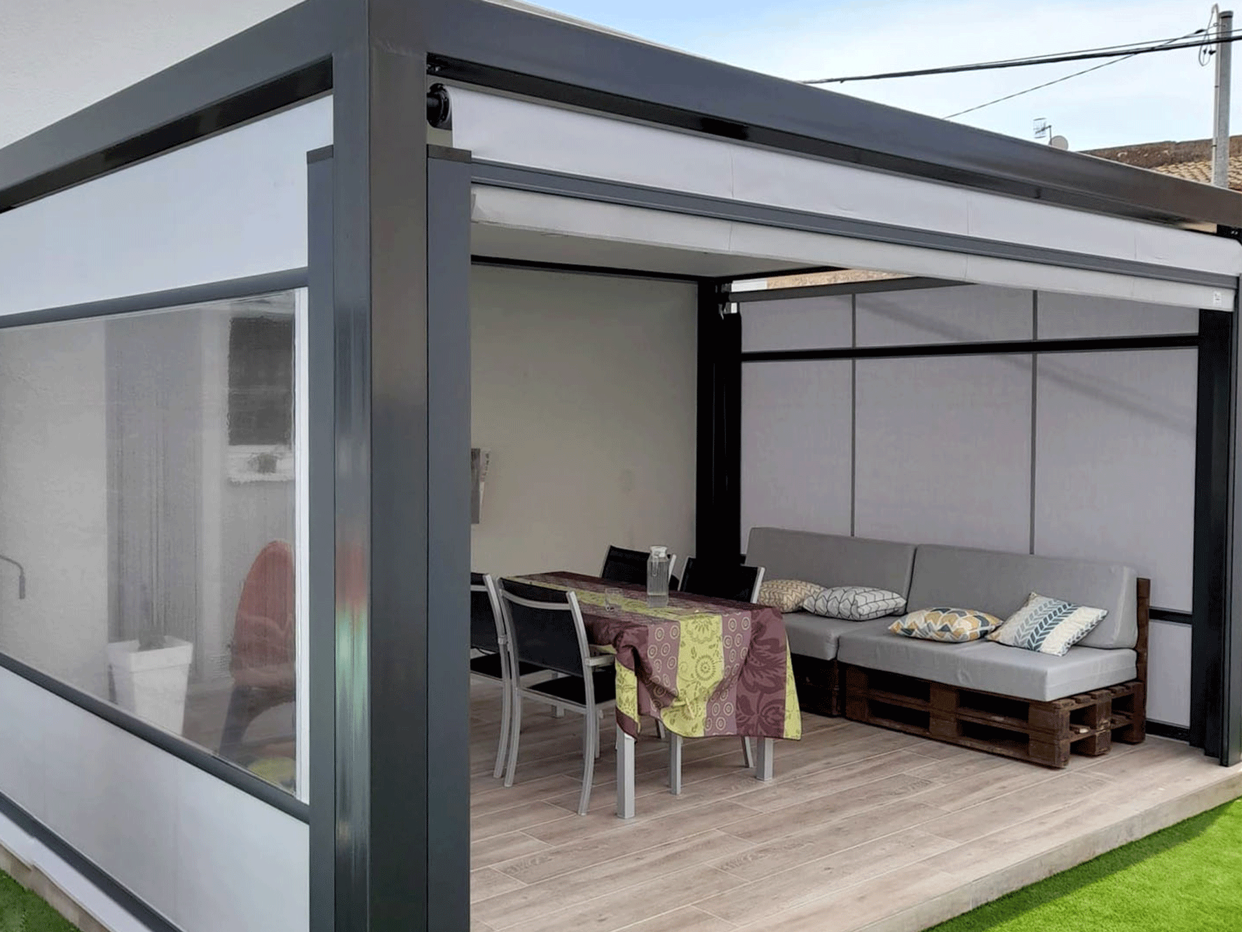 Adaptamos las estructuras, tanto de madera como de aluminio, y las lacamos de forma personalizada además de confeccionar todos los tejidos a medida, siempre usando materiales y tejidos de primera calidad, para poder así ofrecer garantía de fiabilidad y durabilidad.
